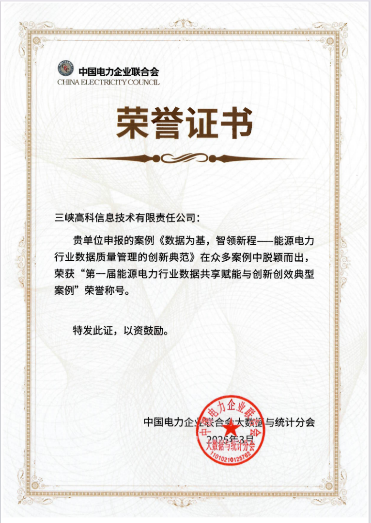 近日,從中國電力企業(yè)聯(lián)合會大數據與統(tǒng)計分會主辦的“第一屆能源電力行業(yè)數據要素發(fā)展生態(tài)大會”傳來喜訊,三峽高科申報的案例《數據為基,智領新程——能源電力行業(yè)數據質量管理的創(chuàng)新典范》在眾多案例中脫穎而出,榮獲“第一屆能源電力行業(yè)數據共享賦能與創(chuàng)新創(chuàng)效典型案例”榮譽稱號。